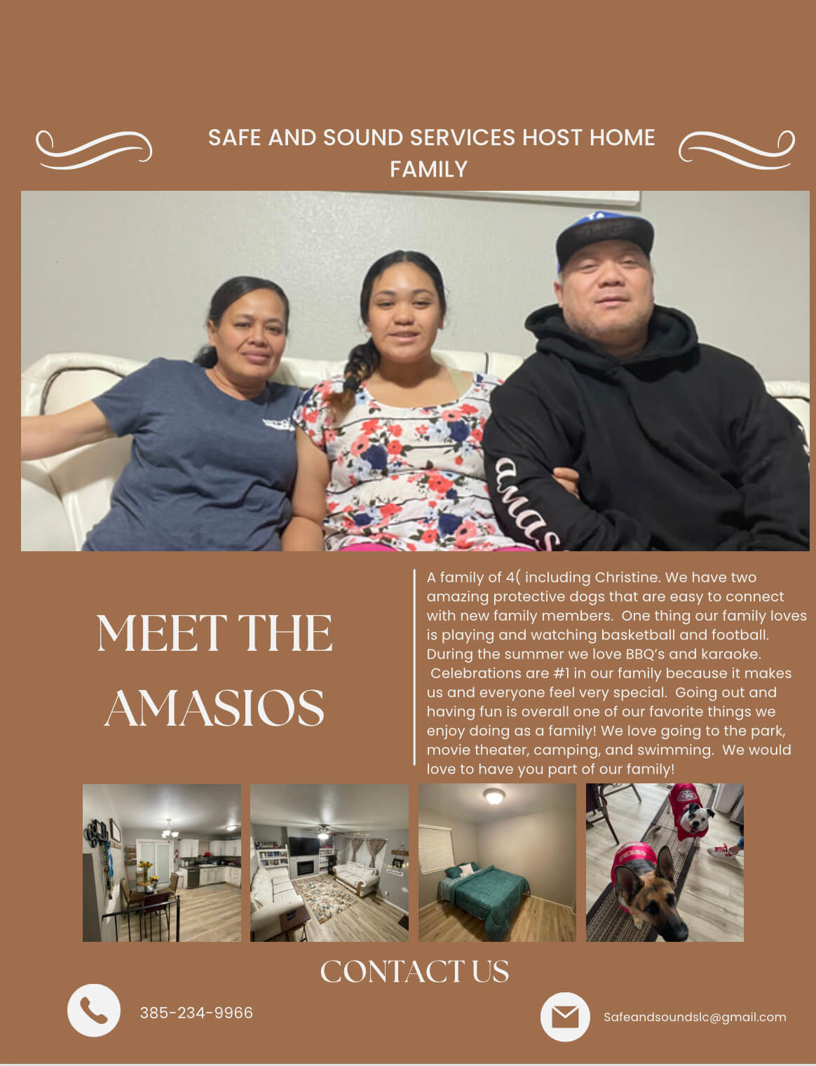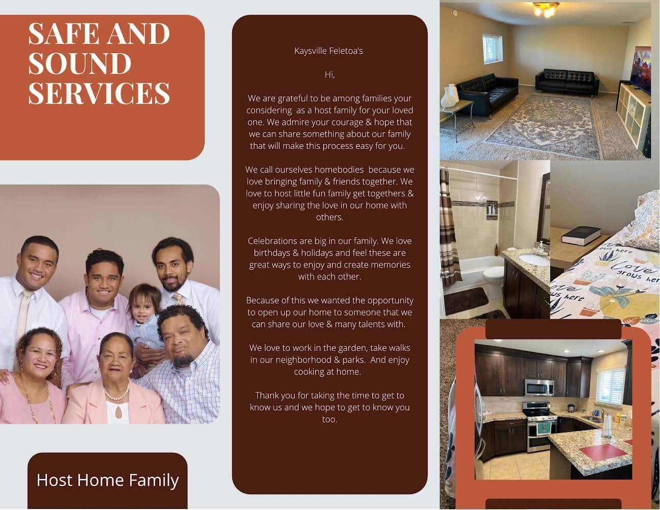 Safe and sound services provide host home services that include care in a family setting. We have amazing families with beautiful homes who have made it their mission and goal to help uplift and support those individuals who choose to live in their homes. We have multiple host home options that you can choose from. These families have been carefully selected and have made the decision to open their homes to help your loved one feel a part of their families through love, support and care.
